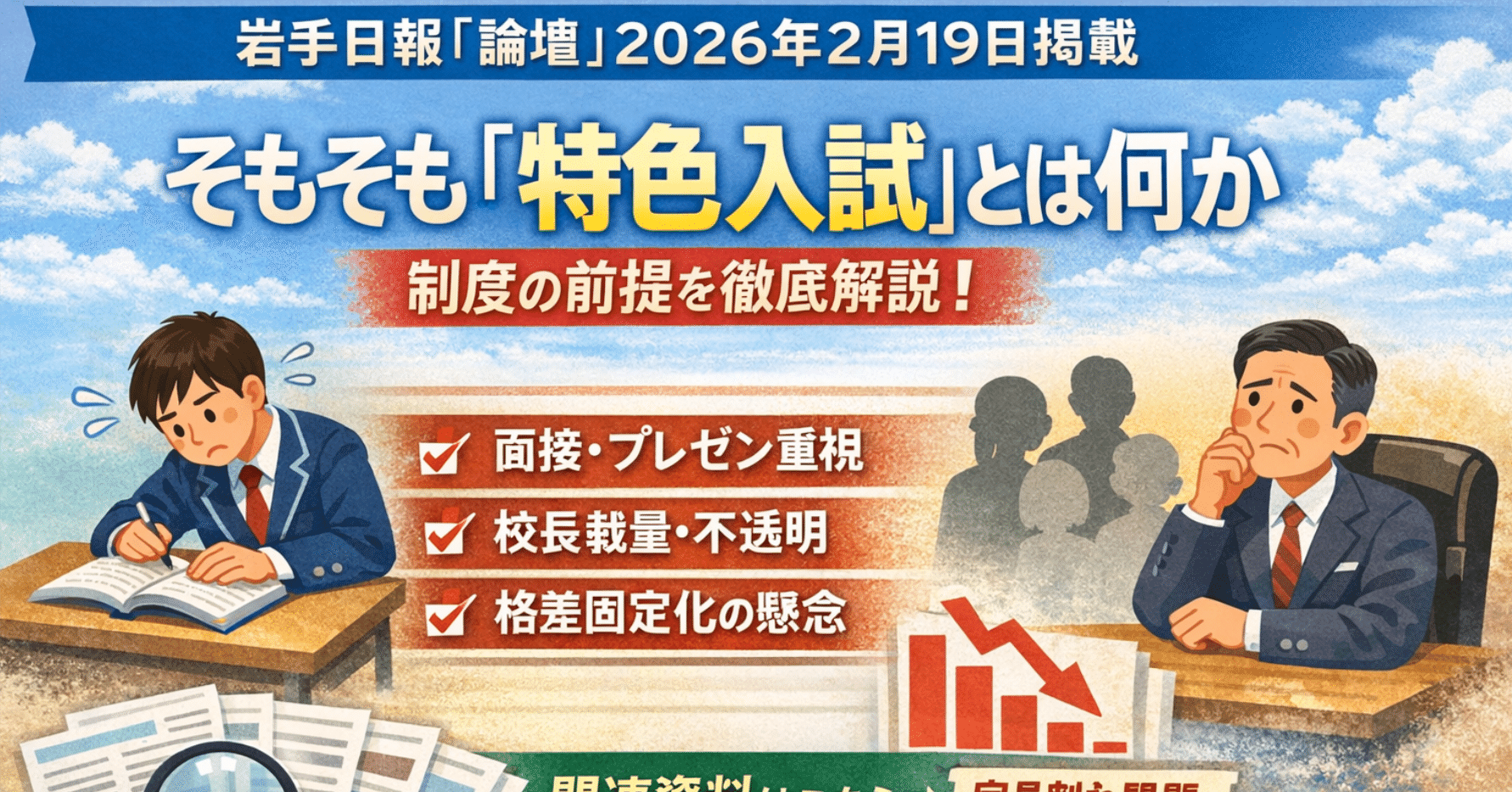 岩手日報に掲載 高校入試の「特色入試」は誰のための制度なのか