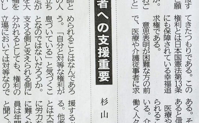 メディア 岩手日報に掲載 介護現場に尊厳と権利と社会サポートを 岩手日報の論壇への投稿が掲載されました(杉山・坪谷による共著。筆頭として杉山が掲載)。先日、わがまち紫波町の介護老人保健... 2023.04.14 メディア公衆衛生