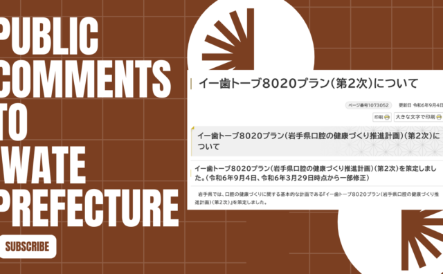 公衆衛生 パブコメ 岩手県「イー歯トーブ8020プラン」案 2023年12月20日、岩手県保健福祉部 健康国保課 健康予防担当より、「イー歯トーブ8020プラン(岩手県口腔の健康づ... 2024.01.07 公衆衛生